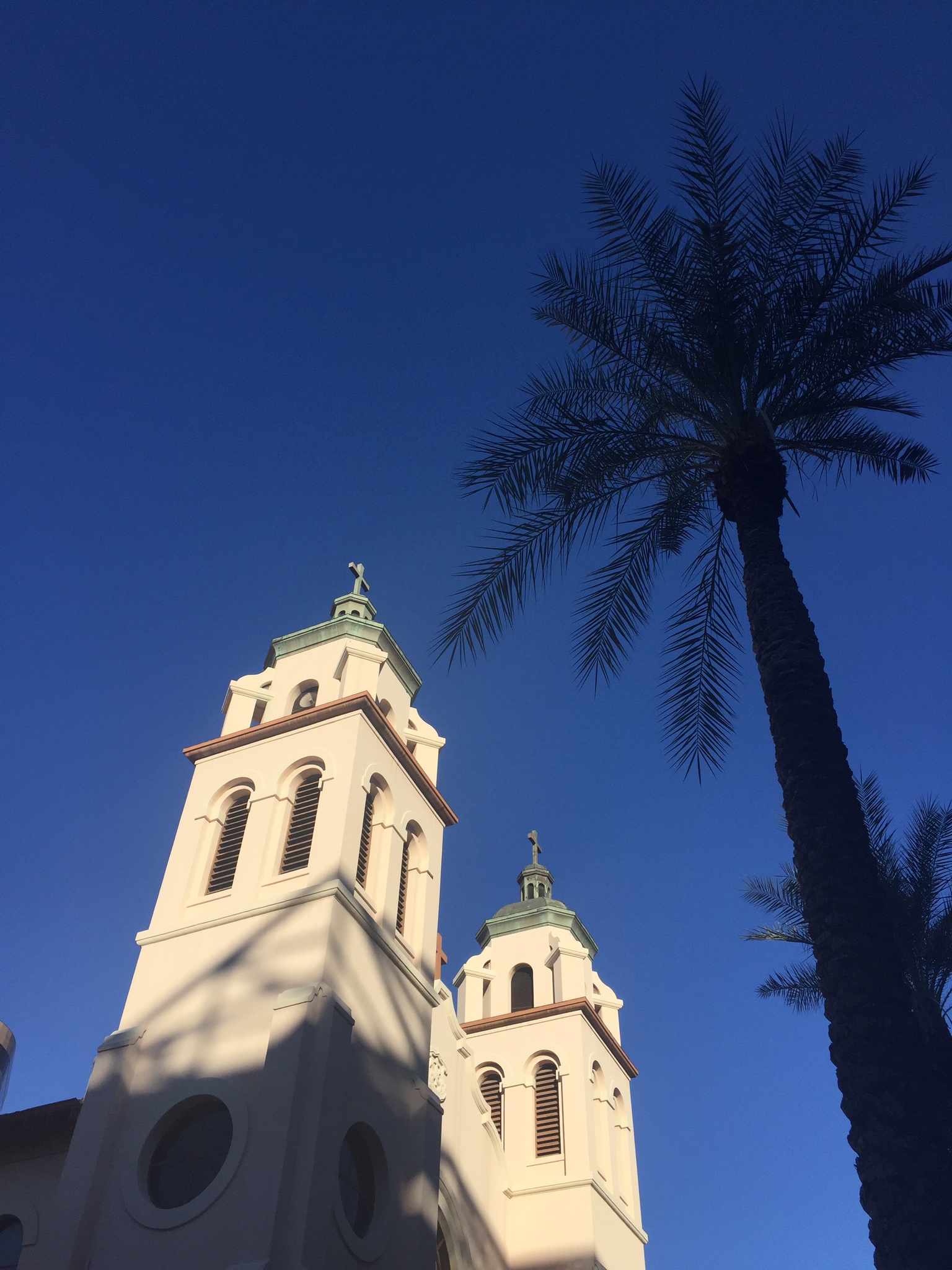 I sent this photo above to an old friend knowing it would matter and be understood with very few words in the message. St. Mary’s Basilica, Phoenix. Very peaceful here in the midst of the shadows.