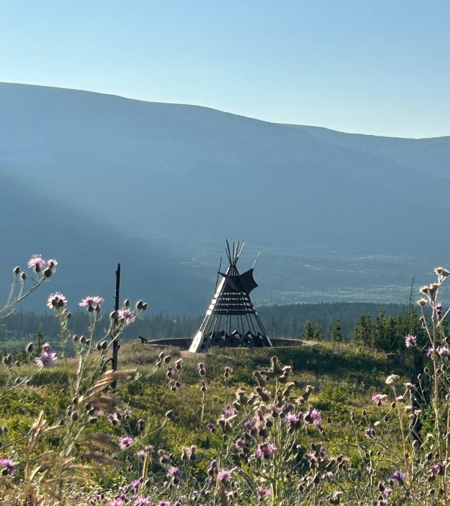 Meandering, we came upon this incredible replica of a painted lodge or tipi. The designs on each dwelling represent both the spiritual experiences of the Blackfeet culture and the owner. Home is a dwelling, a place. Home is where your people are. Home is in your heart.